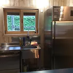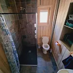 חדר האמבטיה מצויד במקלחת בעמידה ושירותים נפרדים ברשות האורחים.